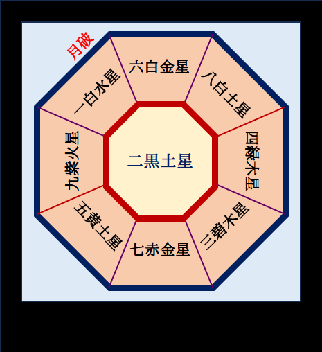 今月は年盤と月盤が同じ星の配置で重なるので、中宮となる二黒土星を始めとして、すべての星が各宮の強い影響を受けやすくなります。