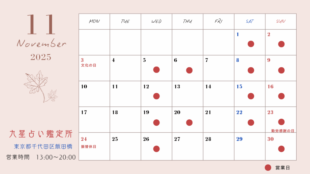 - 下記カレンダーの鑑定予定日にてご予約を承ります。
